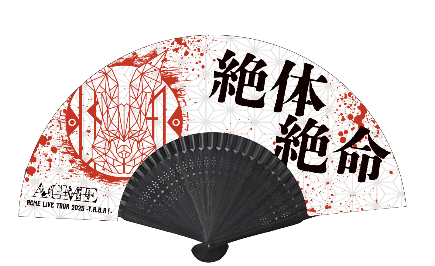 - Live Tour 2025 -Y.A.B.A!- オリジナル扇子 - お待たせいたしました!ACME WEB STOREより新作、Live Tour 2025 -Y.A.B.A!- 『オリジナル扇子』が登場です! 今回ご紹介するのは、ACMEの「Live Tour 2025 -Y.A.B.A!- オリジナル扇子」!白地に赤のACMEロゴが印象的で、シンプルながらも存在感抜群のデザインが特徴です。新曲を楽しむ際に、ぜひとも手に入れておきたい一品です。 ACME扇子史上、初めての「白扇子」!是非ともご購入ください!数量には限りがありますので、お早めのご購入をおすすめいたします。 なお「通信販売」でのご購入に限り「Y.A.B.A!アクリルキーホルダー(販売価格¥1,000-)」を漏れなく無料プレゼントいたします。この貴重な機会を逃す手はありません! 【販売価格:2,000円 税込・送料別】 This product can be shipped overseas.